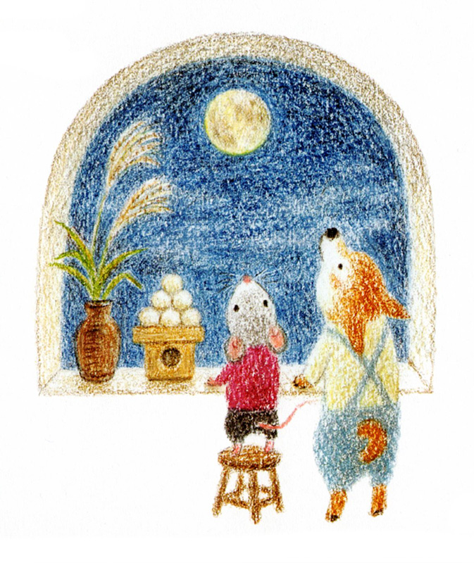 Ogni giorno i due amici esplorano il mondo all’aperto. Ora indossano abiti un po’ più caldi e passeggiano tra i primi profumi autunnali. Quanti fiori e insetti tra l’erba! Un pomeriggio raccolgono un fascio di spighe di miscanto e si fermano a osservare gigli selvatici lungo il sentiero. Tornati a casa, Kiro prepara dolcetti di riso, da gustare insieme mentre il suono melodioso dei grilli accompagna la sera.