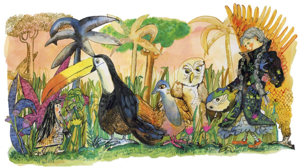 Il libro si trasforma così in un piccolo gioco di caccia al tesoro: tra piante tropicali fuori luogo, creature sorprendenti e richiami alla cultura pop e artistica, ogni pagina invita a soffermarsi, osservare, scoprire.