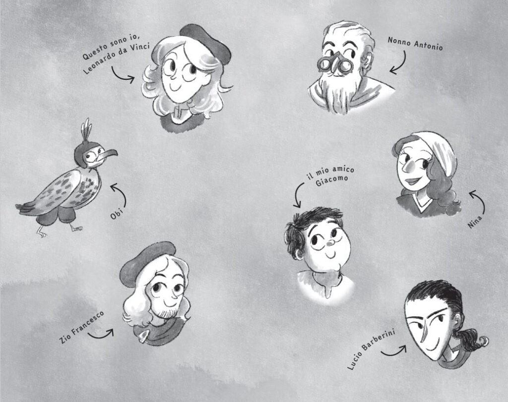 «Immaginare e illustrare Leonardo bambino è stato molto divertente! Prima del grande genio barbuto che conosciamo, c’è stato un bambino con gli occhi vivaci, pieno di curiosità verso tutto, al quale è stato un onore e un piacere dare forma».