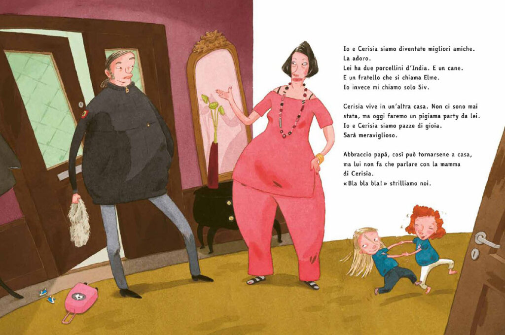 “Io e Cerisia siamo diventate migliori amiche. La adoro. Lei ha due porcellini d’India. E un cane. E un fratello che si chiama Elme. Io invece mi chiamo solo Siv. Cerisia vive in un’altra casa. Non ci sono mai stata, ma oggi faremo un pigiama party da lei. Io e Cerisia siamo pazze di gioia. Sarà meraviglioso.”
