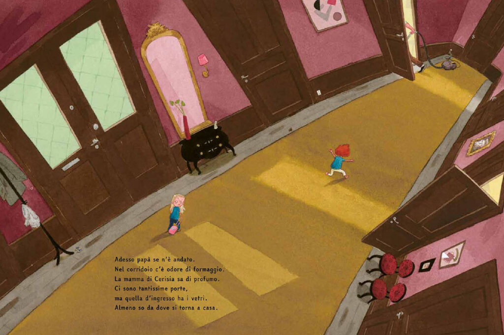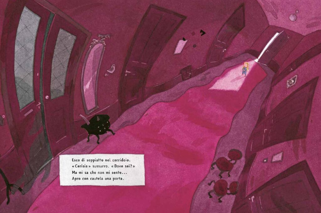 Ma basta poco perché quell’attesa luminosa inizi a incrinarsi. La casa di Cerisia, mai vista prima, si rivela un luogo ambiguo e straniante: un corridoio infinito, odori insoliti, presenze eccentriche e dettagli che sfuggono a ogni logica. Quando il papà se ne va, tutto cambia. Gli spazi si dilatano, le proporzioni si deformano e la realtà sembra piegarsi allo stato d’animo di Siv.